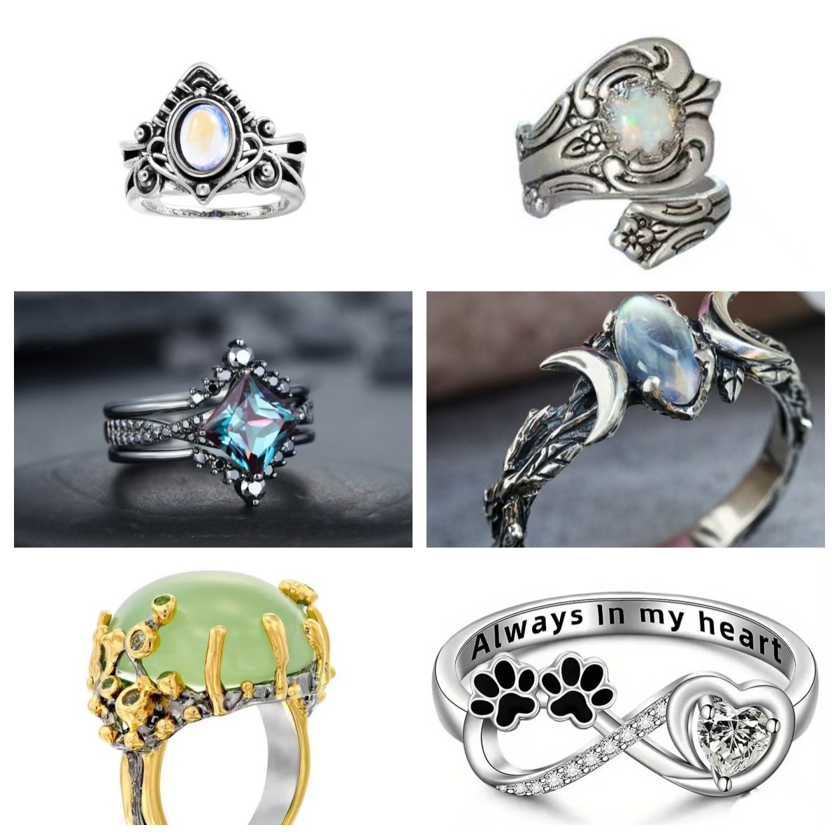 European and American Cross-Border Pet Cat and Dog Paw Print Heart Birthstone Fashion Ring Birthstone Name Commemorative Words Personalized