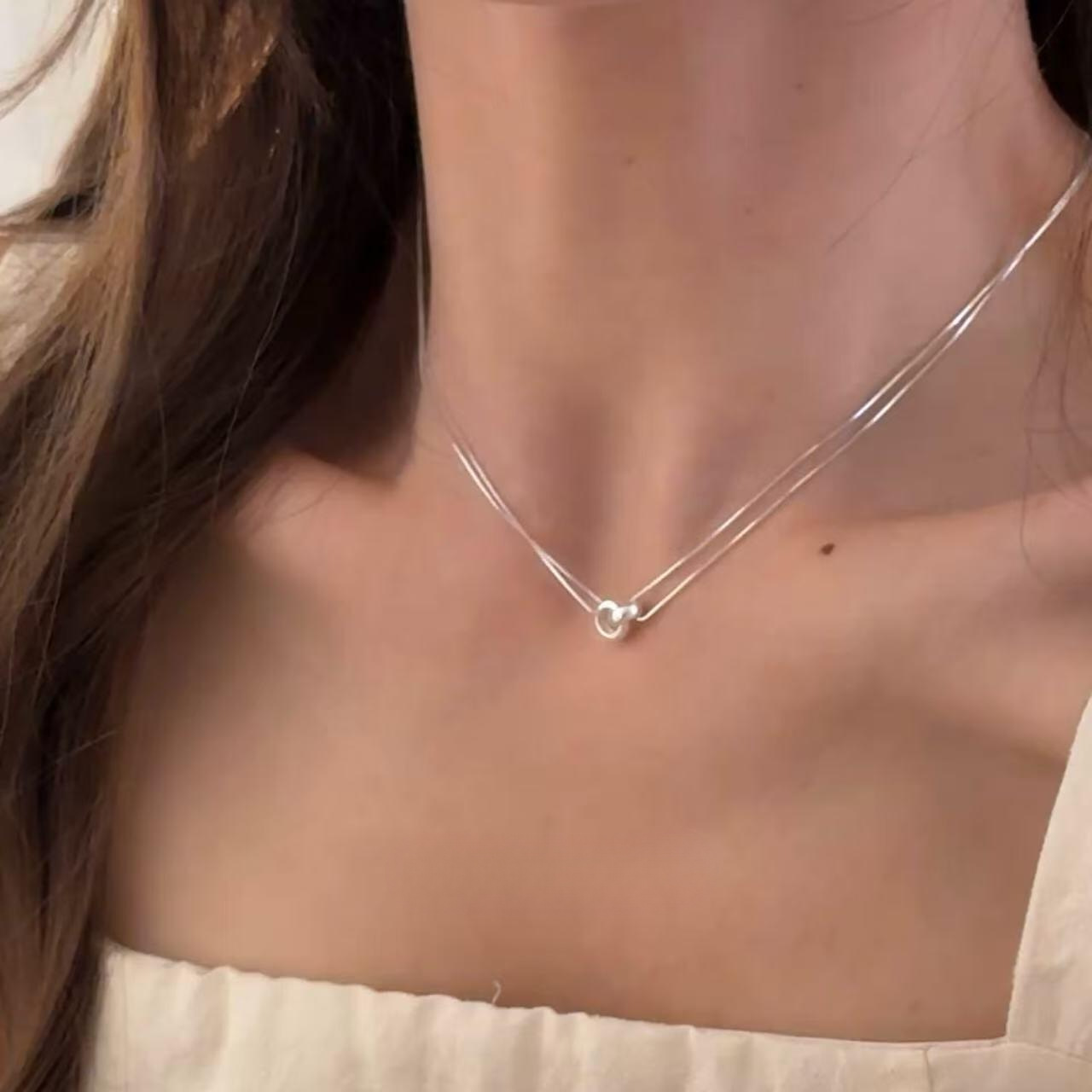 Korean Minimalist Style Double-Layer S925 Sterling Silver Necklace for Women, New Niche Versatile Collarbone Chain
