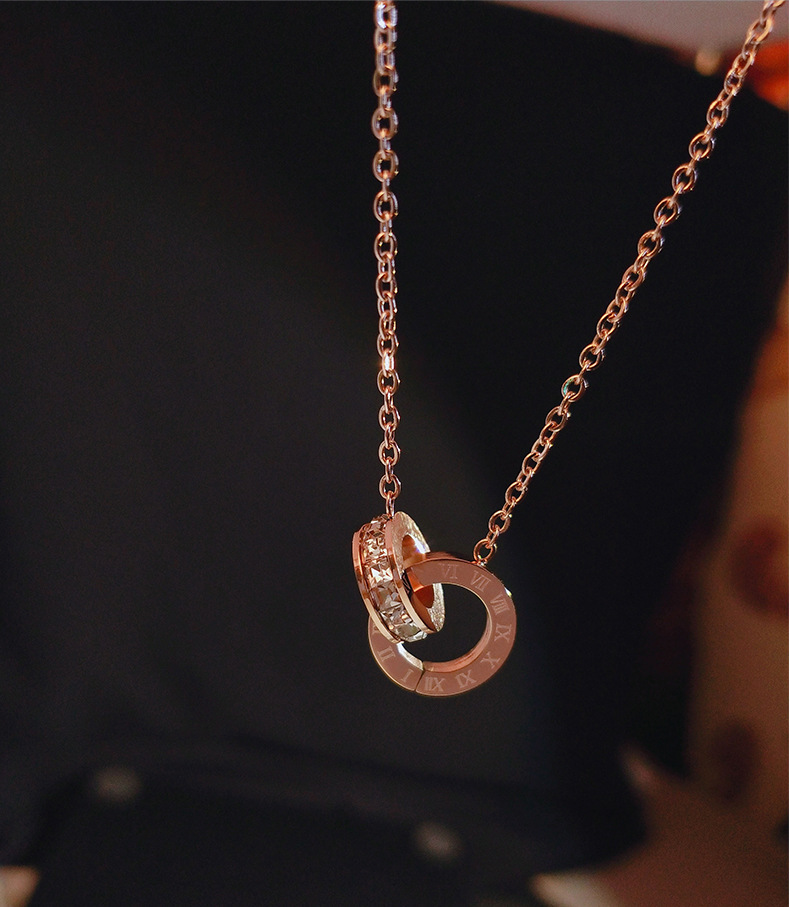 Roman Numeral Double Ring Buckle Titanium Steel Clavicle Chain Women's Rose Gold Net Red Tide Circle choker Alphabet Necklace