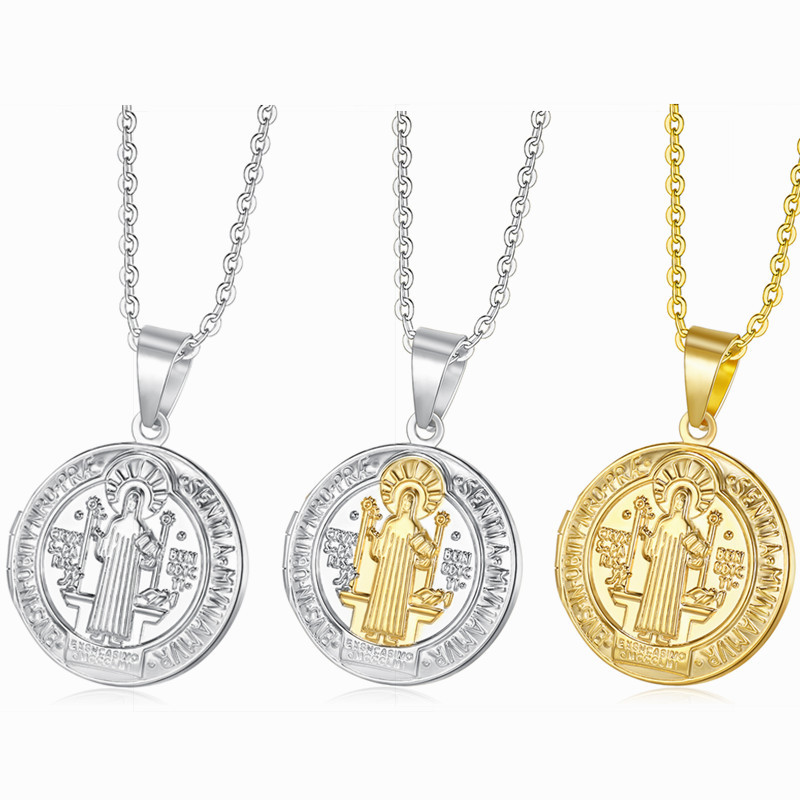 Cross-border e-commerce classic jewelry European and American retro ins style round box pendant necklace ladies titanium steel necklace