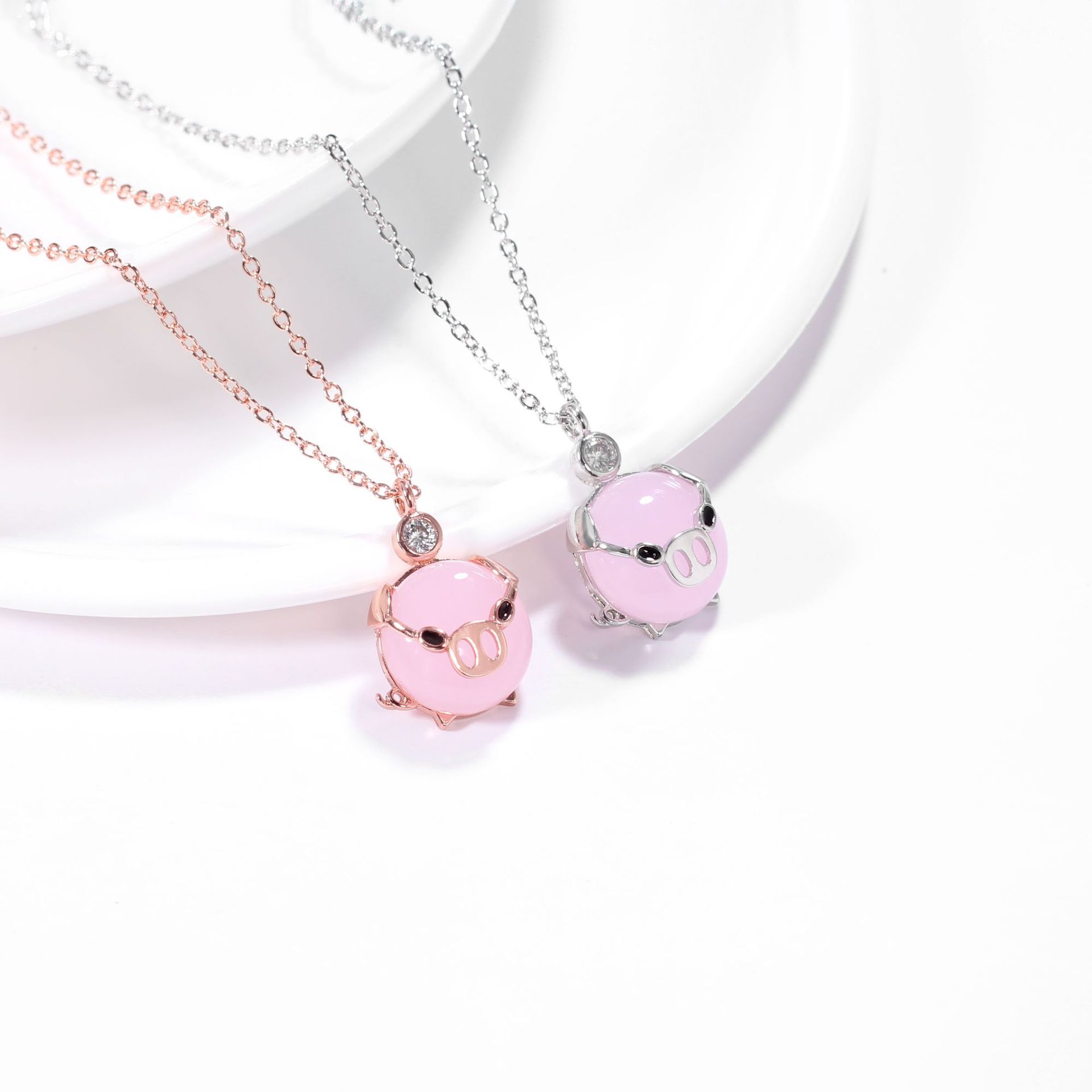 Benmingnian Zodiac Pig Pink Crystal Necklace Female Cat's Eye Pig Pendant Collarbone Chain Animal Jewelry Fashion Accessories
