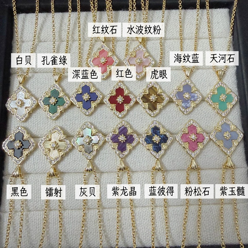 Italian Brushed Fabric Clover Necklace for Women, Mother-Of-Pearl Clavicle Chain with a High-End Feel, Versatile Diamond-Studded Flower Necklace