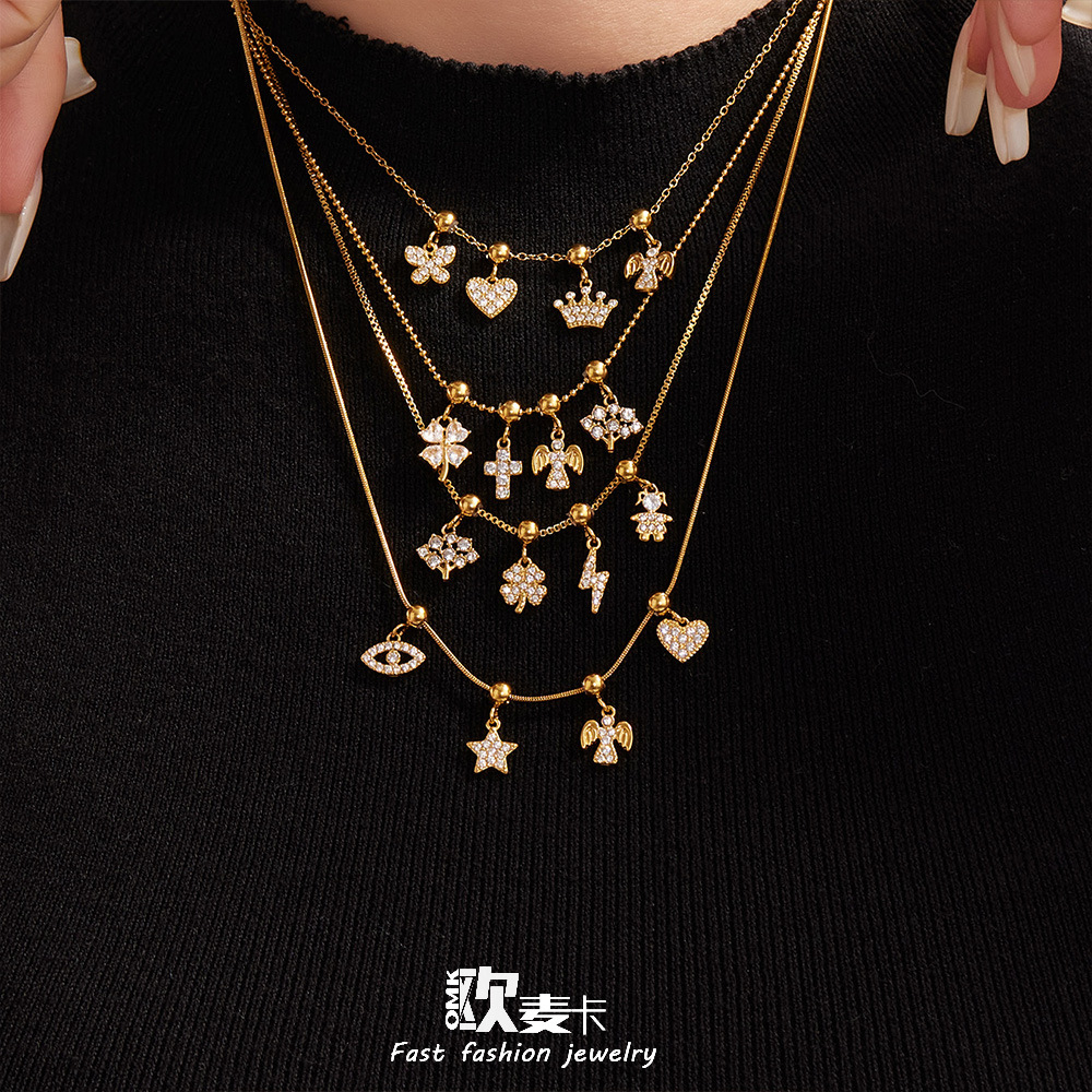 Omaca Super Flash 5A Zircon DIY Multi-Accessory Pendant Necklace European and American Cross-Border Hot-Selling New Stainless Steel Material