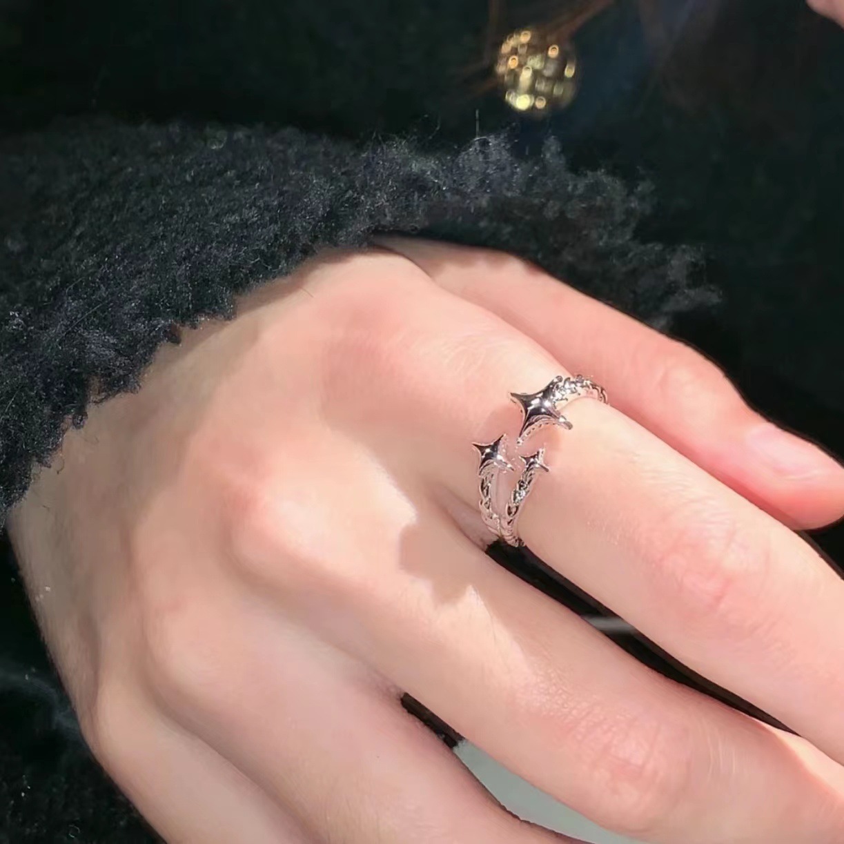 Star Ring Female Niche Design Trendy Cool Women ins Cool Wind Adjustable Opening Four Mans Star Neutral Wind Index Finger