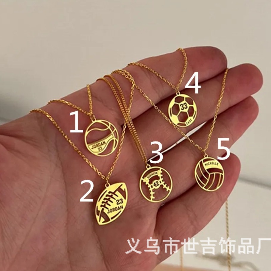 DIY Private Custom Name Basketball Necklace European and American Cross-Border Cut Out Personalized Stainless Steel Ball Name Necklace