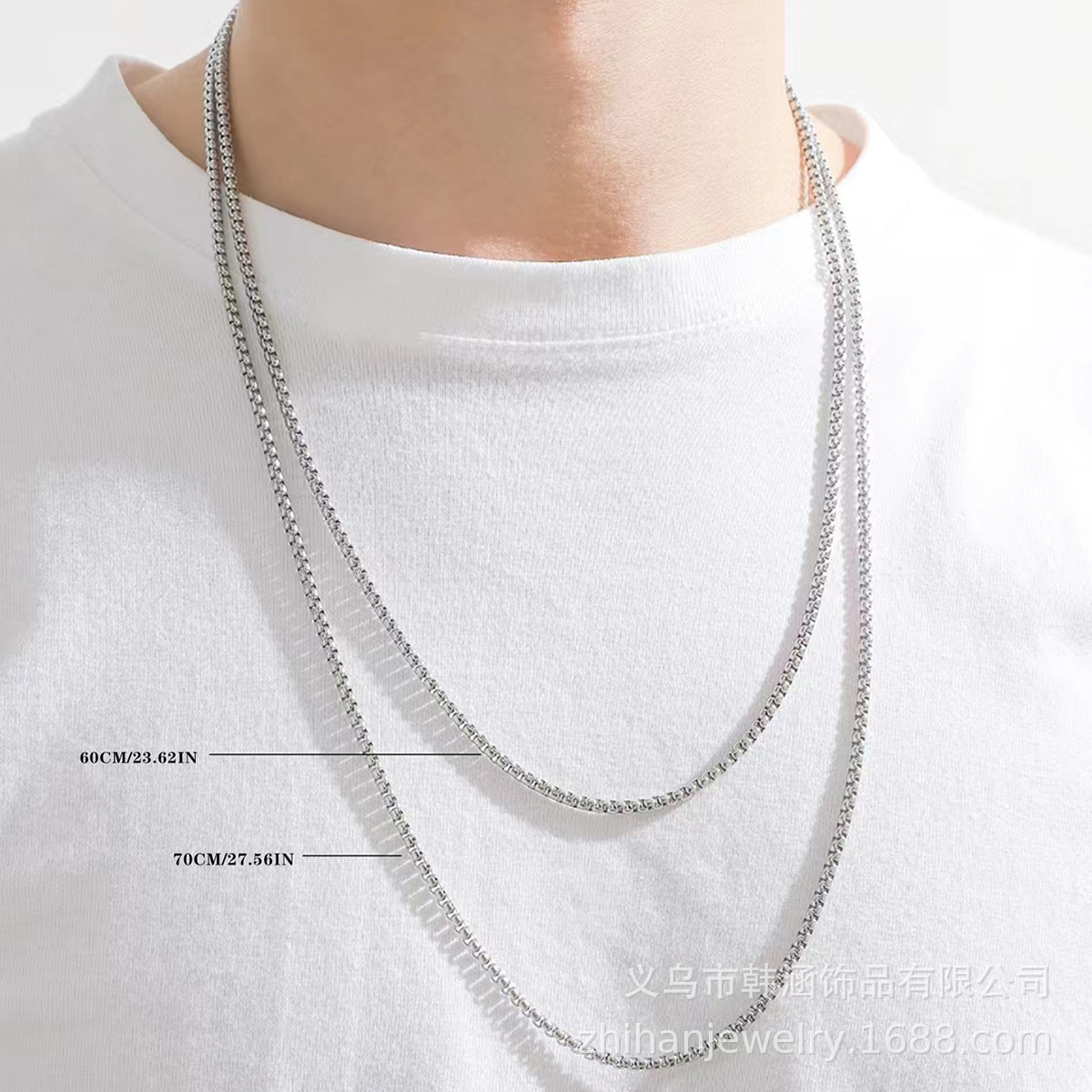 Cross-Border E-Commerce 3mm Stainless Steel Keel Chain Pearl Chain Versatile DIY Handmade Men's Necklace Geometric Lines