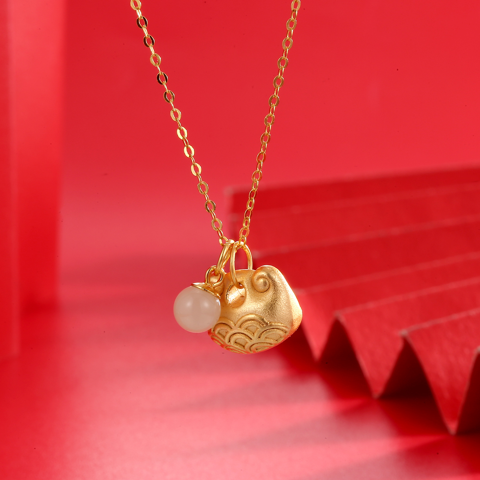 S925 silver 3D hard silver Ruyi langhua lock bag pendant necklace inlaid Hetian jade pendant DIY handmade accessories wholesale
