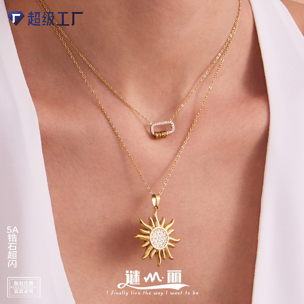 Mili Cross-Border Super Flash 5A Zircon Sun Pendant Clavicle Chain Pvd Electroplating Niche High-End Stainless Steel Necklace