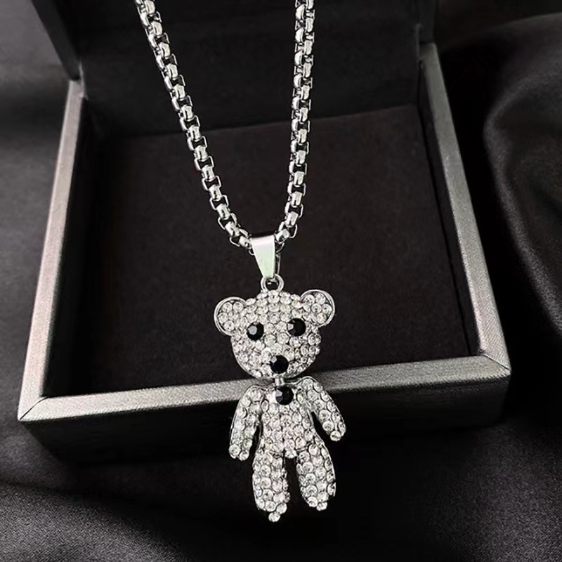 Customized Hip-Hop Personalized Long Sweater Chain Pendant Necklace Wholesale Female Cute Full Diamond Bear Cool Trendy Brand Necklace