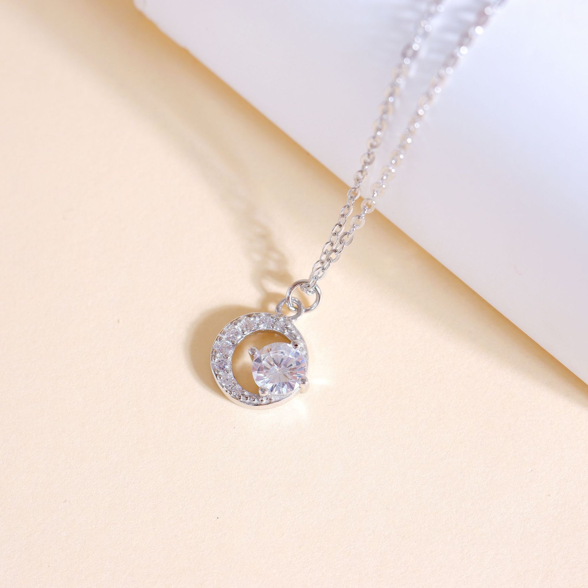 999 Sterling Silver Crescent Moon Shiny Zircon Necklace for Women, Accessible Luxury Design, Niche Shiny Pure Silver Gift Clavicle Chain