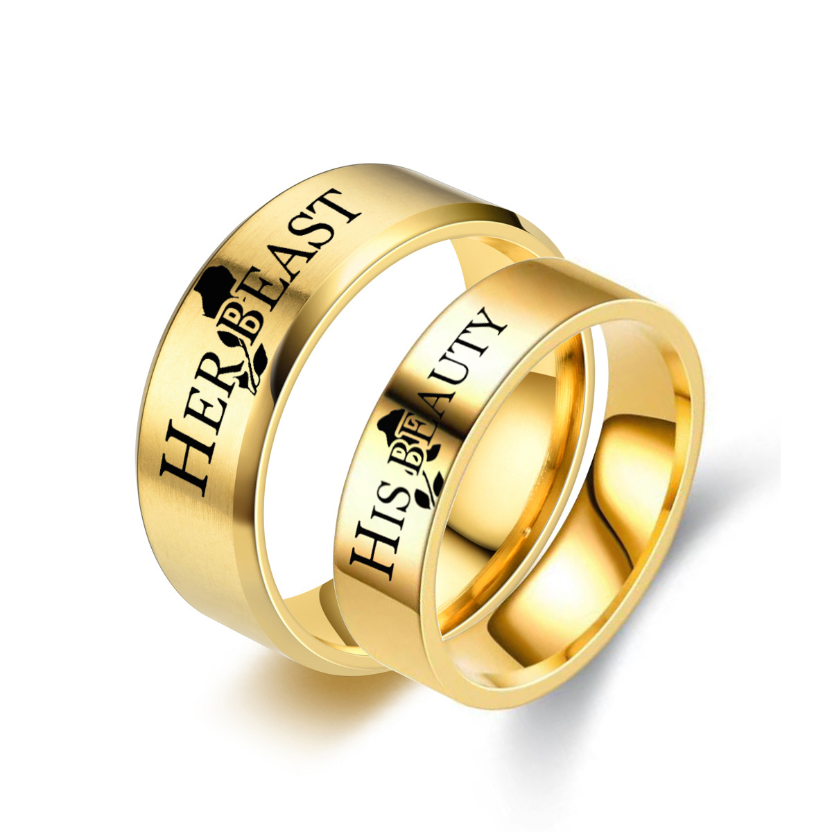 Her Beast & His Beauty couple ring Beauty and Beast titanium steel ring men and women ring