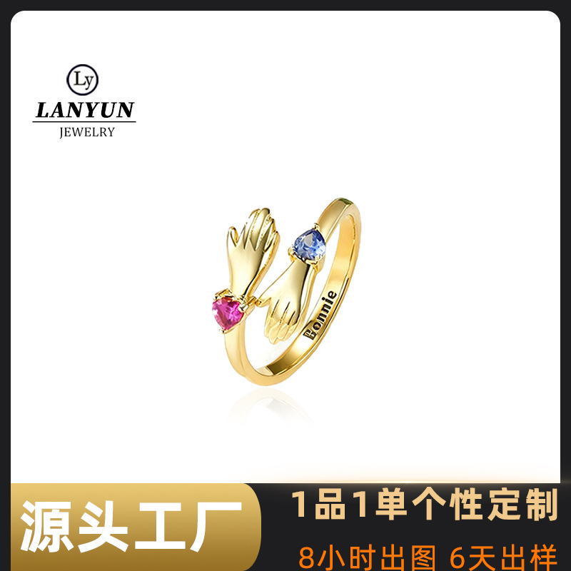 Cross-Border Hot-Selling New Double-Handed Hug Ring December Heart-Shaped Birthstone Personalized Engraved Name Ring Mother's Day