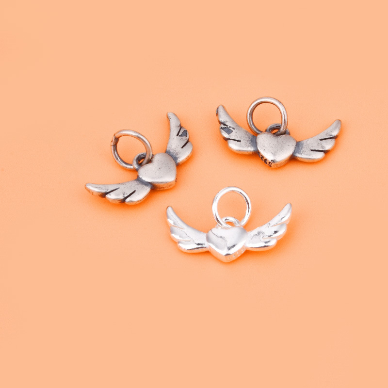 S925 sterling silver retro angel wings love pendant accessories necklace pendant jewelry diy accessories material