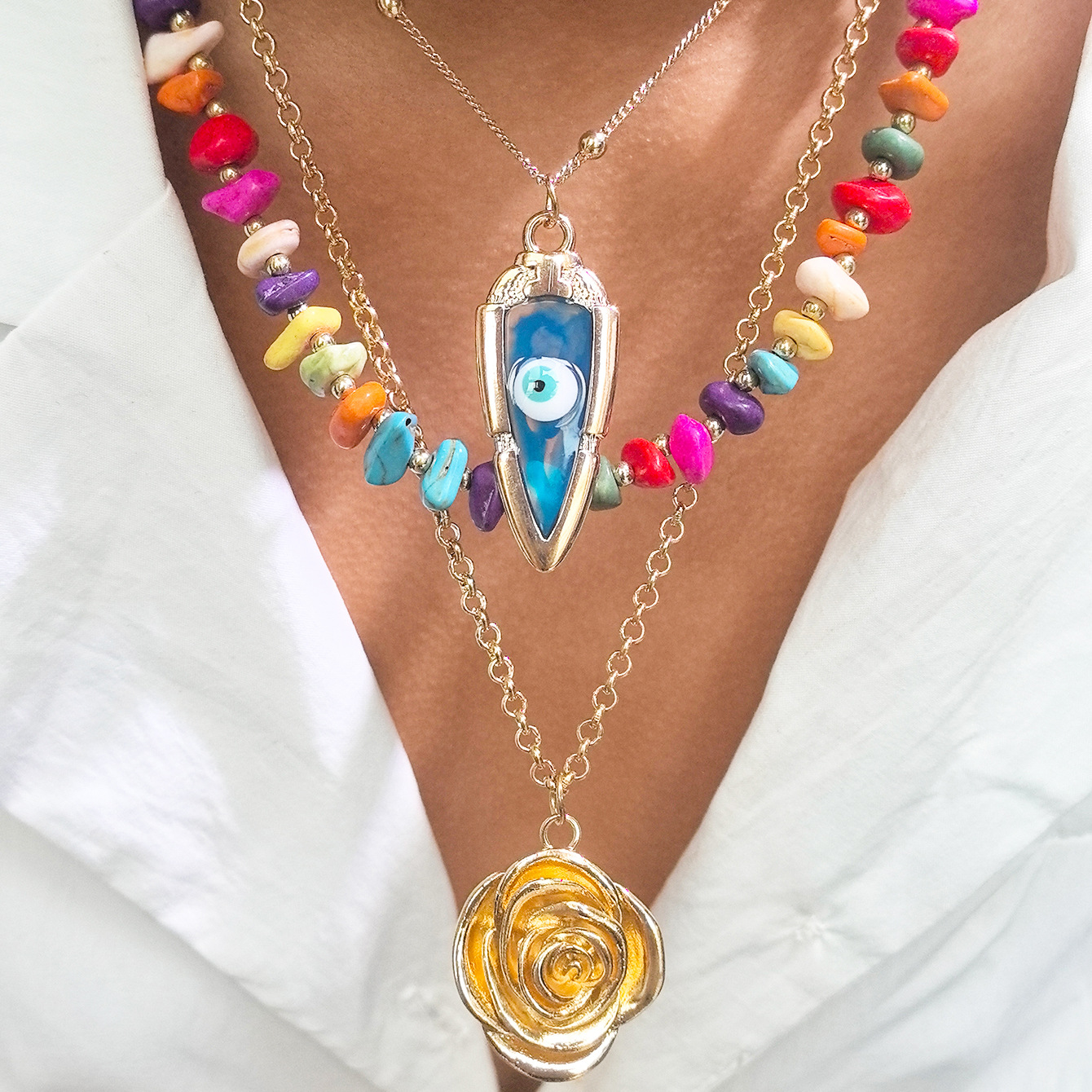Cross-border Fashion Retro Multi-layer Stacked Bohemian Color Devil's Eye Geometric Pendant Chain Necklace