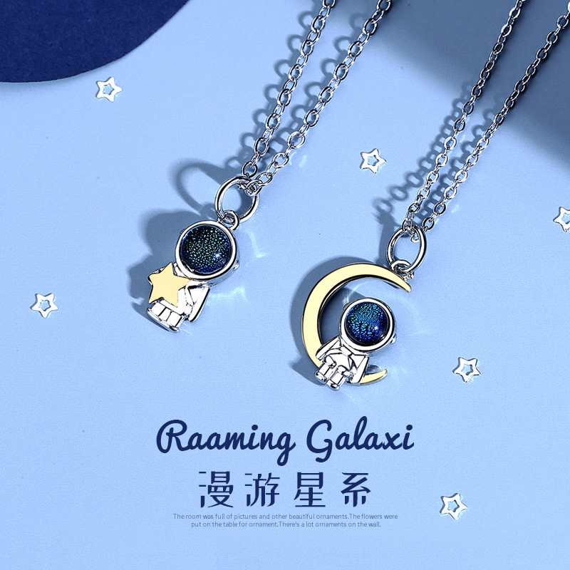 Astronaut Necklace Cartoon Pendant Valentine's Day Gift Trendy ins Style Collarbone Chain Astronaut Couple Necklace