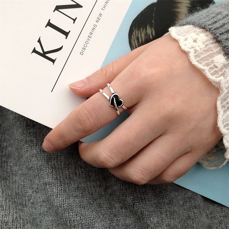 South Korea Dongdaemun heart-piercing retro ring s925 sterling silver personalized temperament women's love ring foreign trade