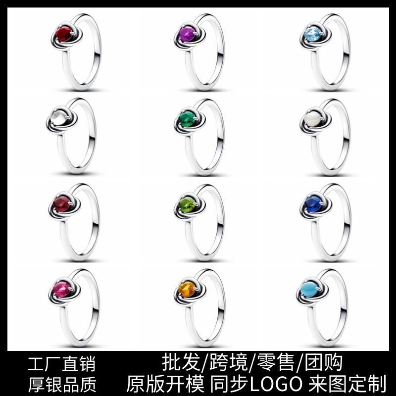 Panjia white copper silver-plated December Series color style stacked Dai Hao stone ring diy simple ring ring