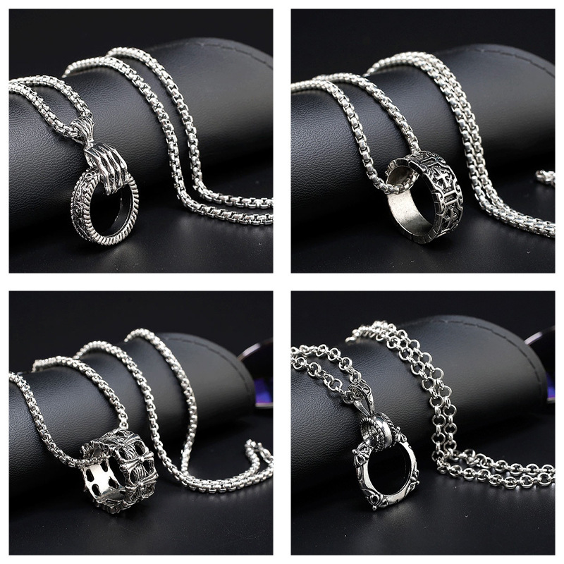 Stainless Steel Chain Combination Ring Necklace Dual-use Trendy European and American Hip Hop Disco Men's and Women's Pendant Fading