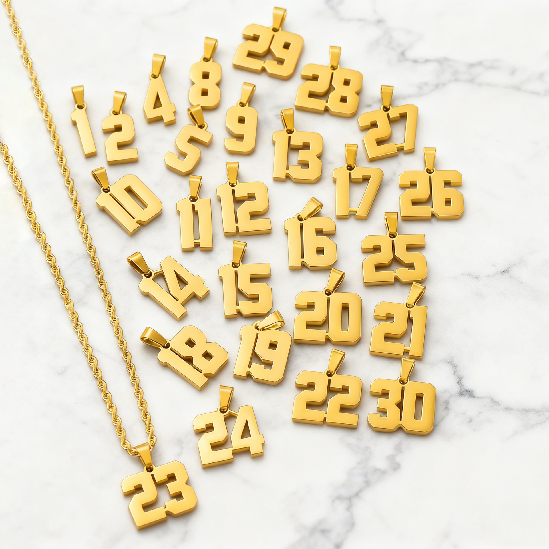 European and American Hip-Hop Trendy Stainless Steel Necklace Plated with 18K Gold Lucky Number High-End DIY Pendant Men's and Women's Jewelry