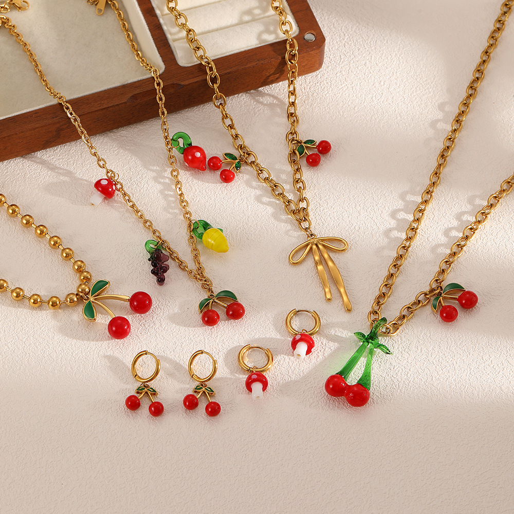 Ins Style Personalized Fruit Pendant Stainless Steel Necklace Female Small Fresh DIY Necklace Long Clavicle Chain Jewelry Set