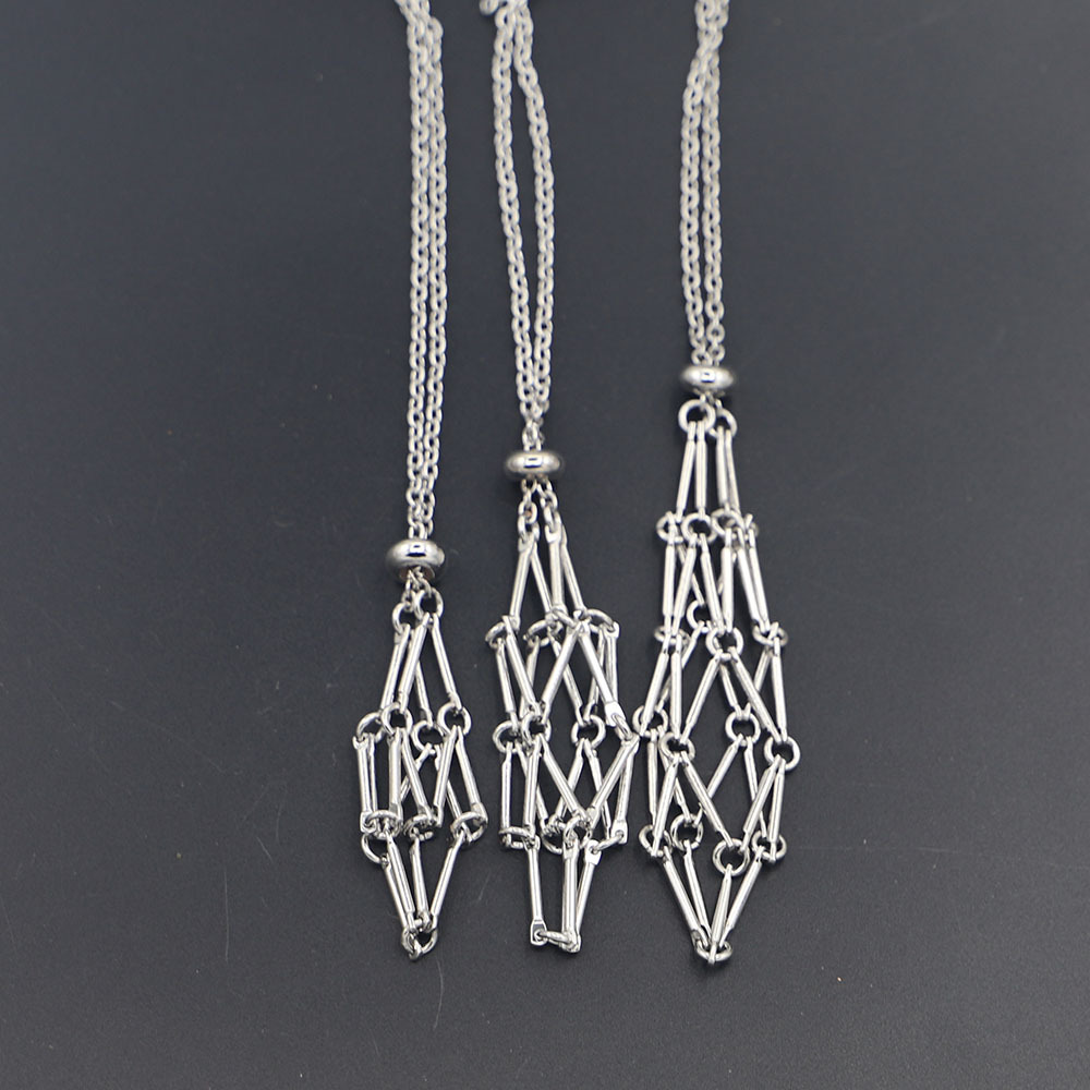 Cross-border DIY Imitation White Golden Adjustable Stainless Steel Metal Bamboo Net Bag Prison Cage Necklace Woven Pendant