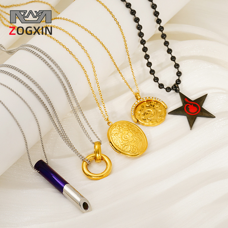 Customized Fashionable Commuting Simple Interlocking Double-Layer Stacked Necklace Photo Box Pendant Stainless Steel Whistle Necklace for Women