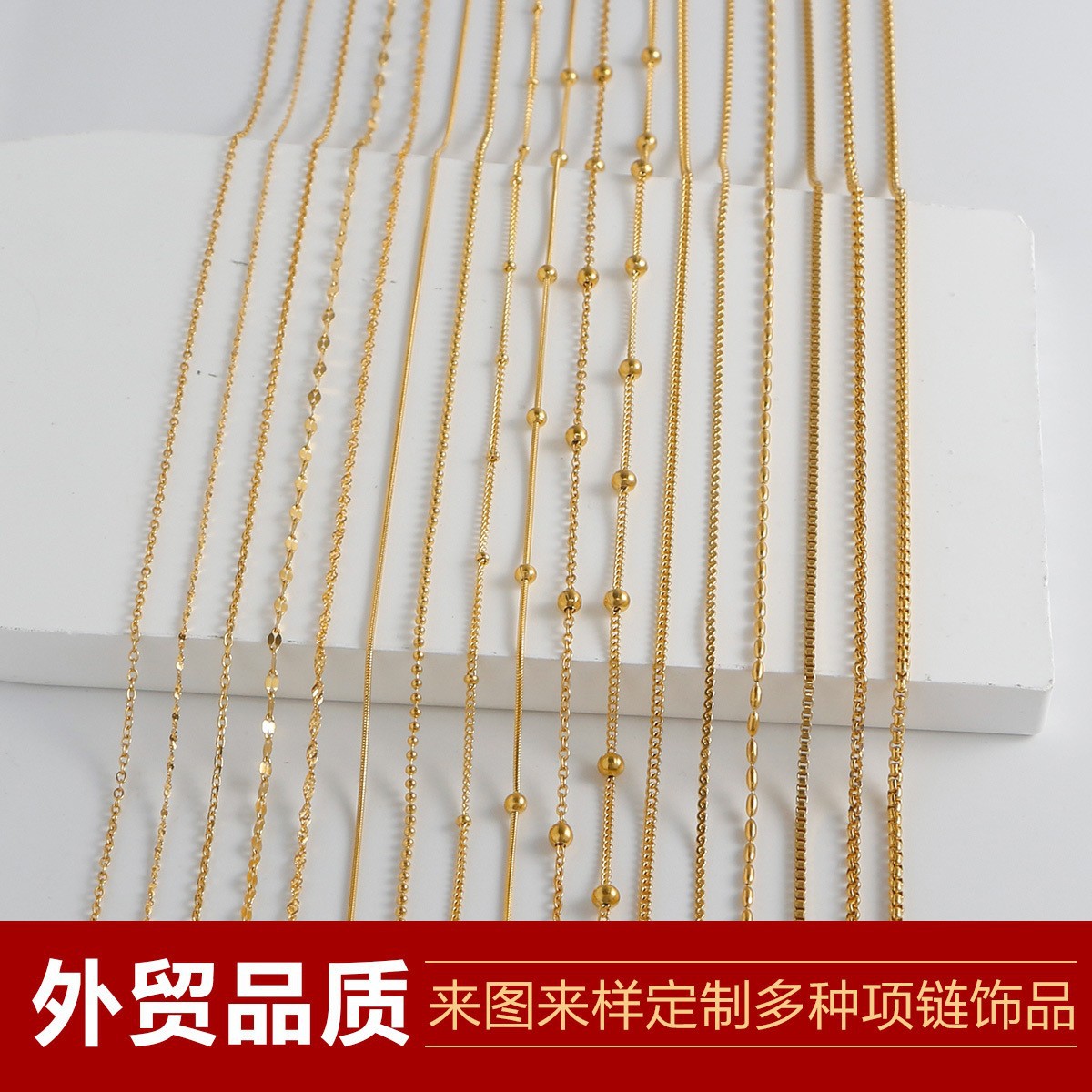 Cross-Border Stainless Steel 18K Gold Necklace for Women, Simple and Versatile DIY Jewelry, Clavicle Chain, Titanium Steel Jewelry, Plain Chain Accessory