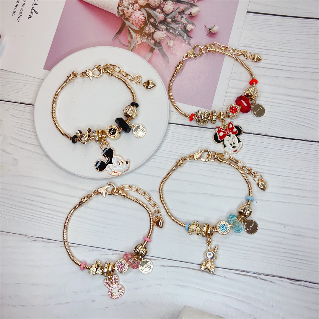 Hot-Selling Korean-Style Gold-Plated Color-Preserving Lobster Clasp Bracelet for Women with Colorful Crystal and Diamond Inlay DIY Cartoon Cross-Border New Product