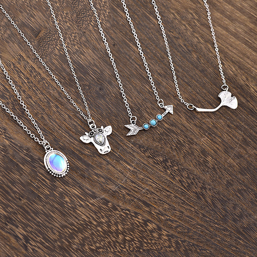 Necklace Processing Customized European and American Fashion Retro Bull Head Leaf Arrow Oval Pendant Necklace Niche Versatile Necklace