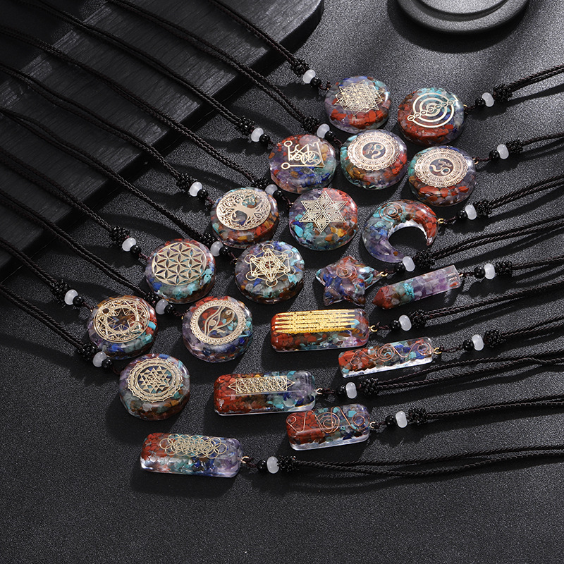 Cross-border hot sale colorful gravel resin necklace natural stone multilateral geometric pendant DIY foreign trade jewelry wholesale