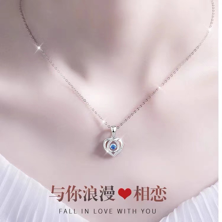 Amazon Cross-Border Best-Selling Love Necklace, Fashionable and Simple Micro-Paved Zircon Heart-Shaped Pendant Necklace, Valentine's Day Gift