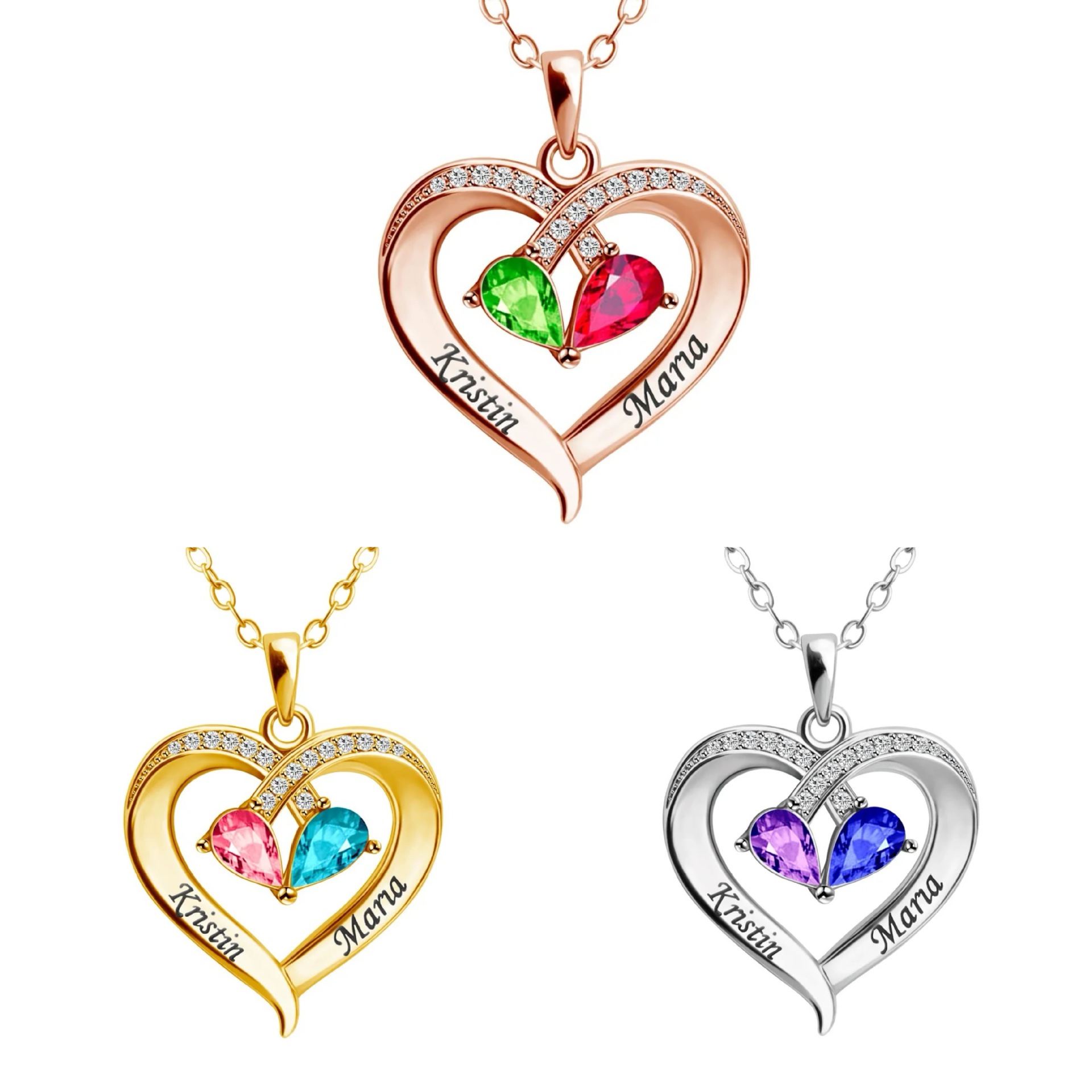 New European and American Creative S925 Water Drop Necklace Women DIY Engraved Name Girlfriend 12 birthstone Jewelry Peach Heart Pendant