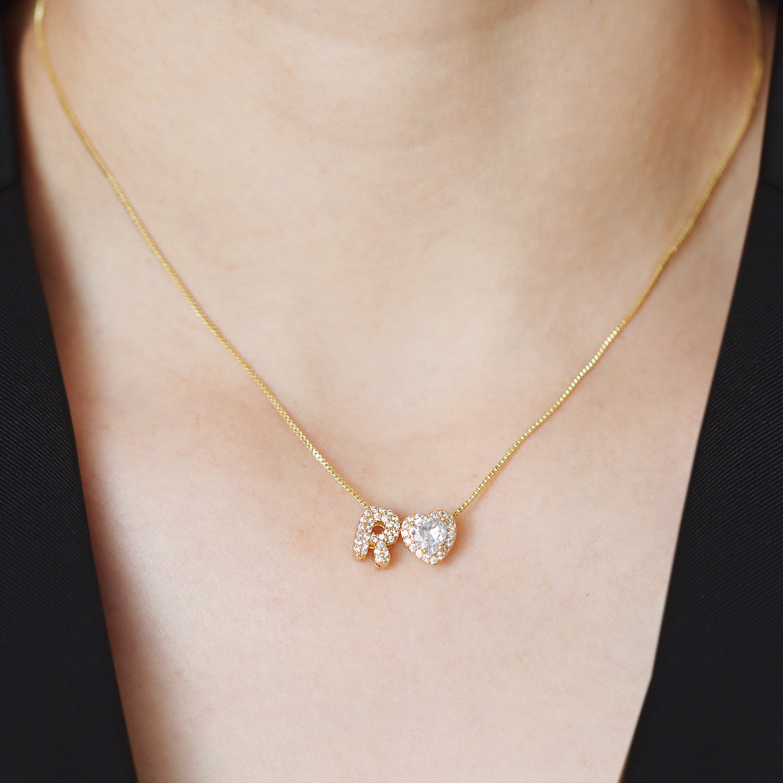 Love Big Zircon DIY Name 26 English Letters Cute Bubble Balloon Full Zircon Box Necklace Pendant