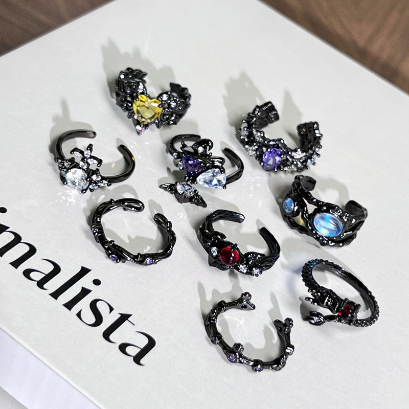 Neutral Style Geometric Heart Sweet Cool Sexy Style Dark Series Open Ring Female Personality Punk High-End Ring
