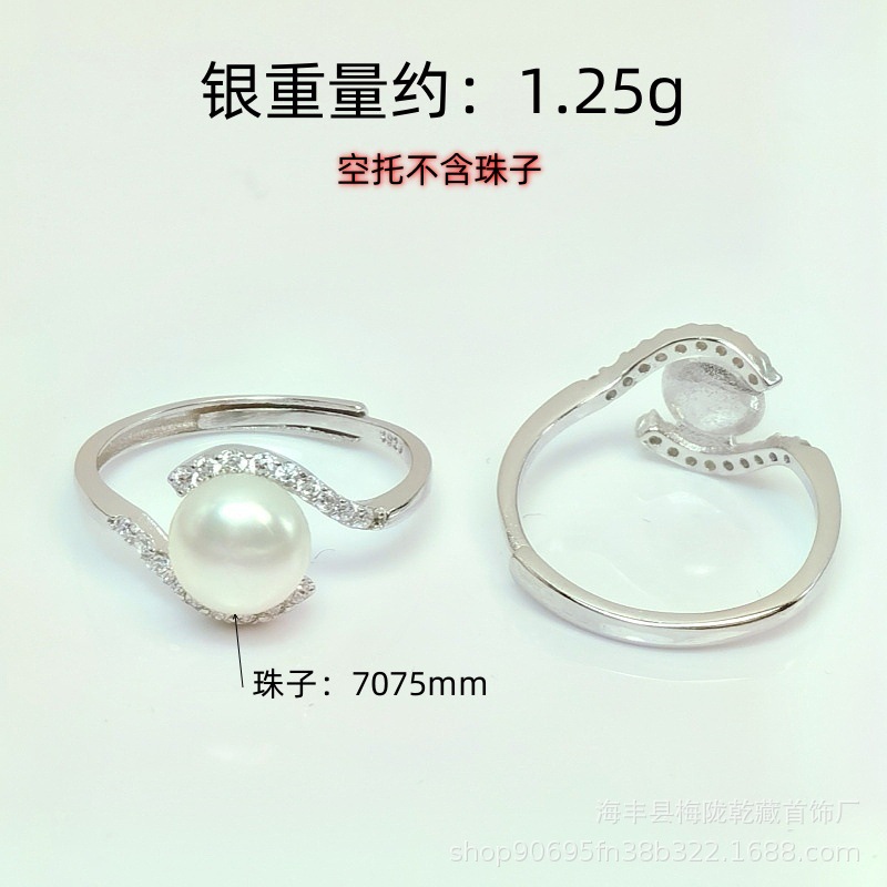 S925 Sterling Silver Simple Women's Ring Pearl Empty Support Live Mouth Adjustable Ring Handmade DIY Accessories 70-75mm Beads