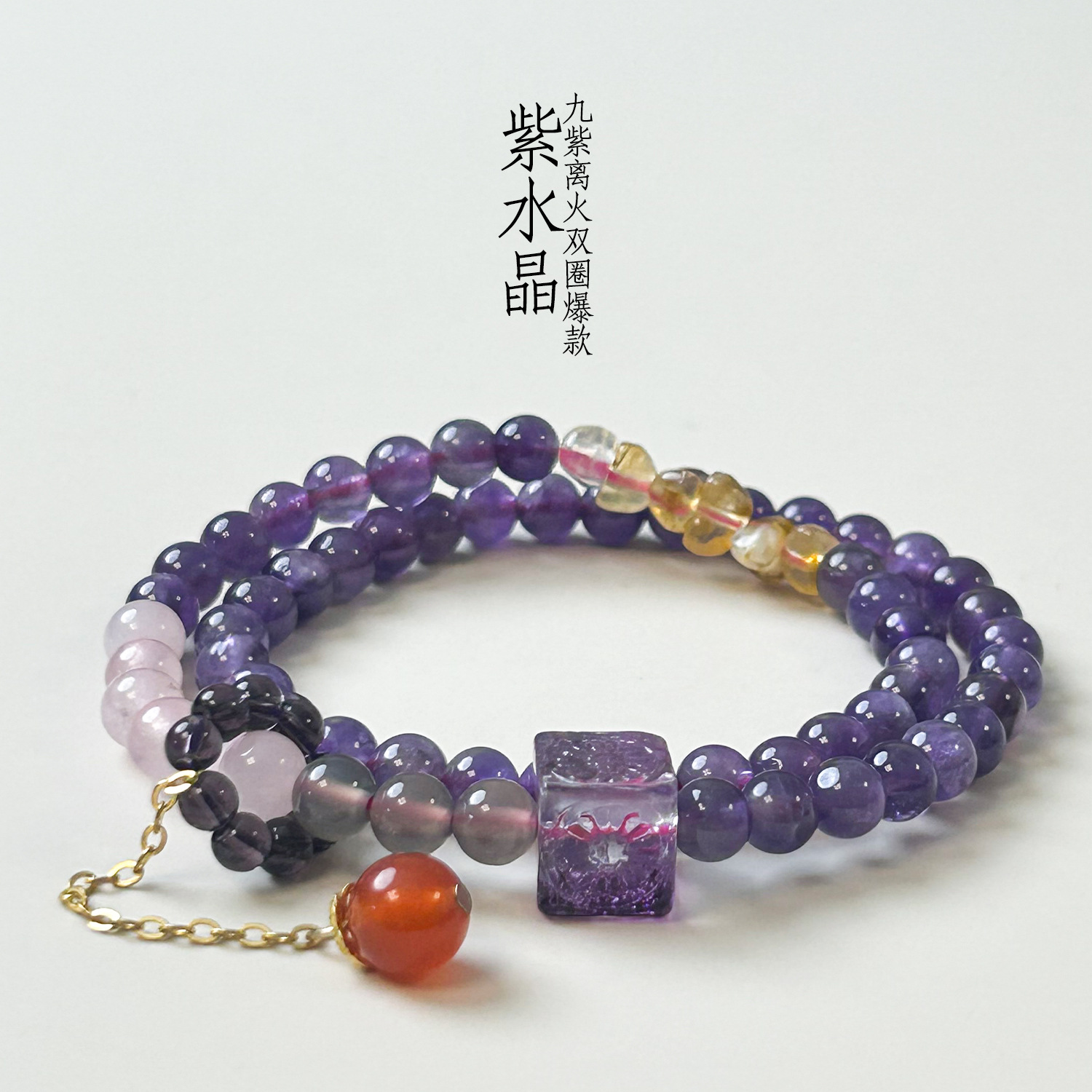 New Jiuzi Fire Handstring New Chinese Natural Amethyst Running Ring Double Circle National Style DIY Design Women's Bracelet