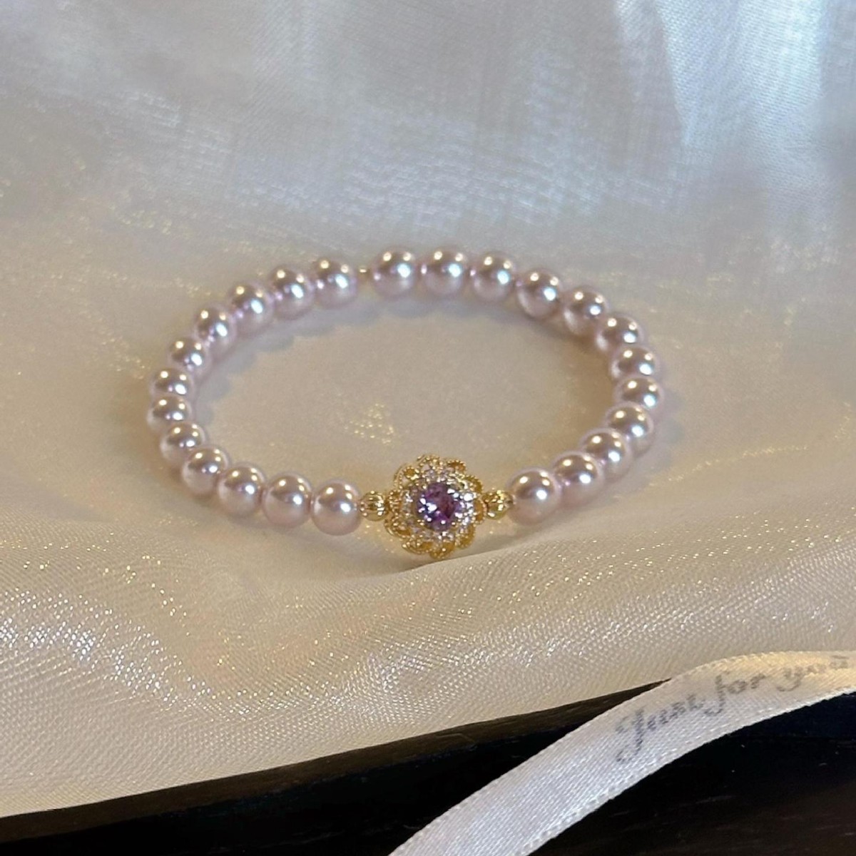 Shijia Pearl Manta Rose Purple Zircon Lavender Bracelet Women's Niche Design High-end Light Luxury White Bracelet