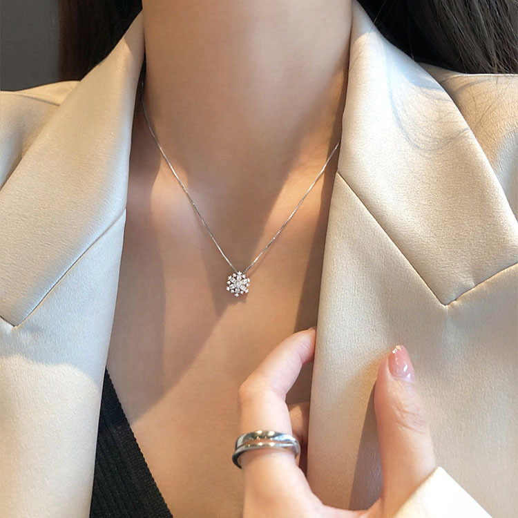 Simple Japanese-Korean Style Snowflake Necklace Fresh Elegant Silver Plated Brilliant Elegant Clavicle Chain Sweater Chain