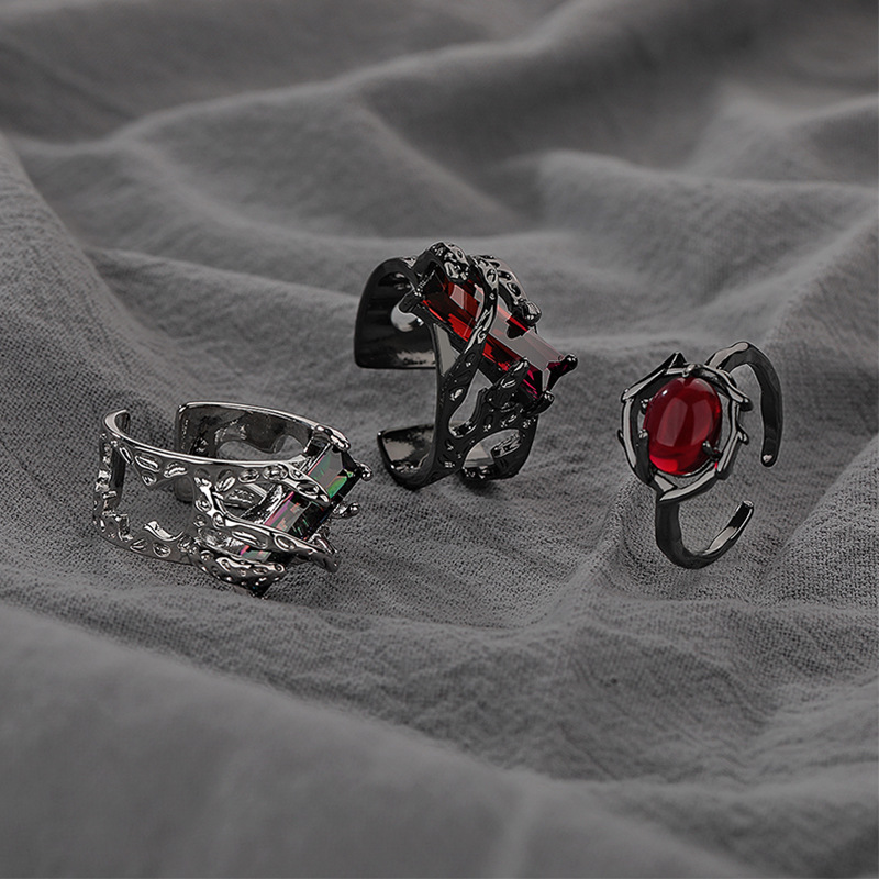 Dark Black Garnet Red Ring for Men and Women Neutral Style Stacked Finger Ring Retro Black Thorns Open Ring