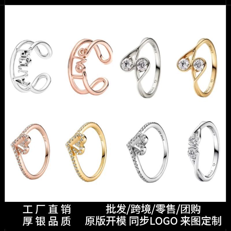 Panjia 925 white copper silver-plated Double Diamond new ring diy accessories mm double love ring for women