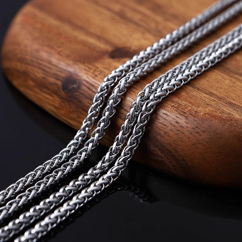European and American Cross-Border Retro Stainless Steel Necklace Men's Bare Chain Titanium Steel Flower Basket Chain 3mm Keel Chain DIY Chain