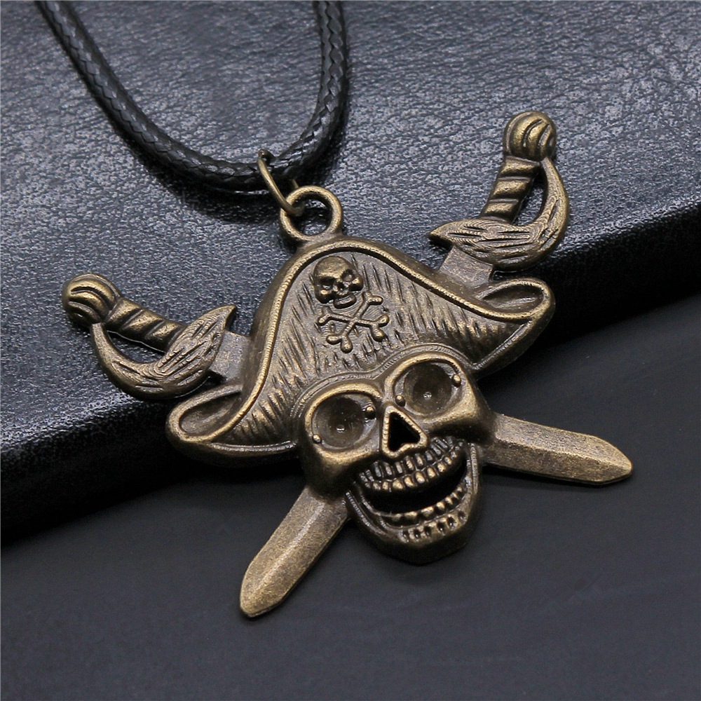 Pirate Skull Pendant Necklace Black Leather Rope Necklace Foreign Trade Cross-Border European and American Retro Trend Jewelry