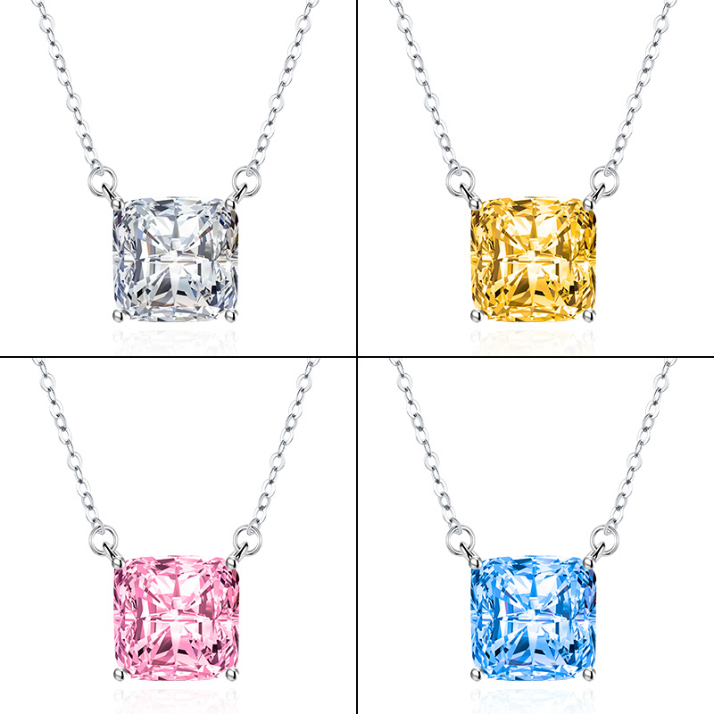 TikTok Live Broadcast Korean Style Fashion Square Diamond Necklace Women's Japanese and Korean Style Simple Moissanite Square Collarbone Chain Valentine's Day Jewelry