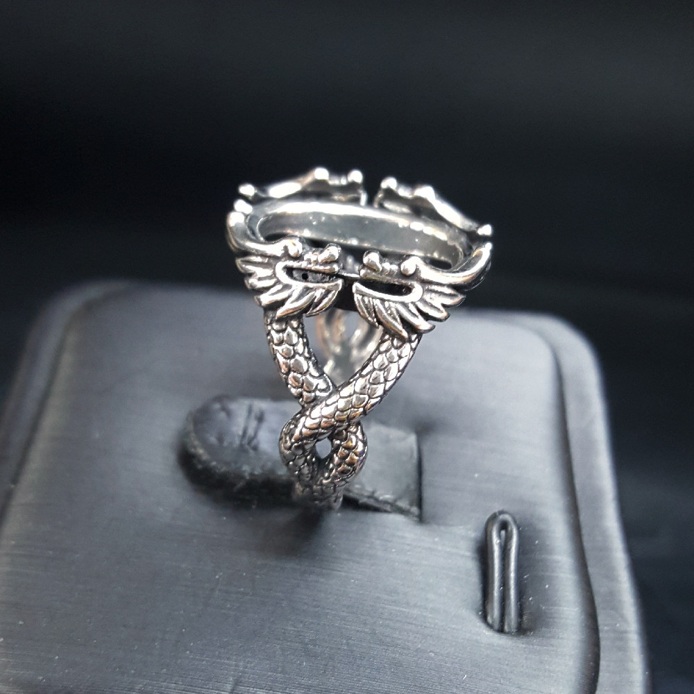 Vintage S925 Silver Ring Empty Egg Noodles 12x 16m Shuanglong Taiyin Old Style 30% Silver DIY Inlay
