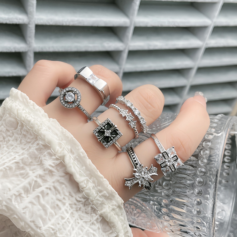 Vintage Distressed Cross Fashion Open Ring Women's Niche Neutral Style Hip Hop Punk Personality Simple Finger Ring