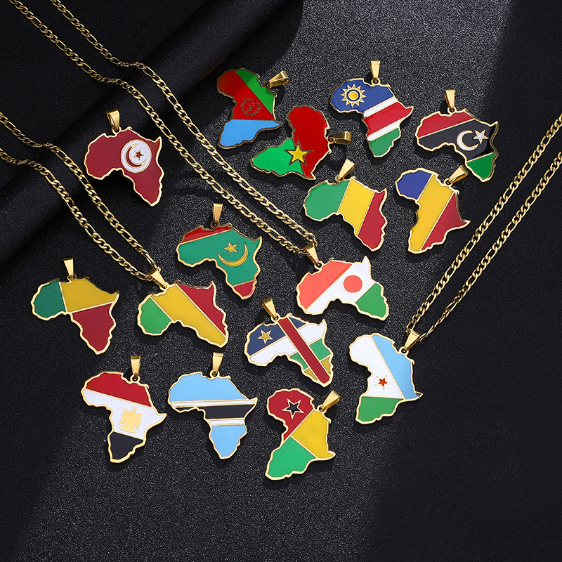 Amazon Hot Selling African Oil Dropping Stainless Steel Map Necklace Geometric Titanium Pendant 2022 New Jewelry