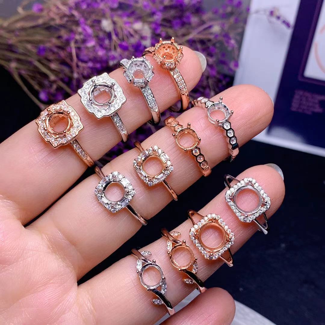 Caibao jewelry 925 silver ring empty to stone inlay can be diy to do