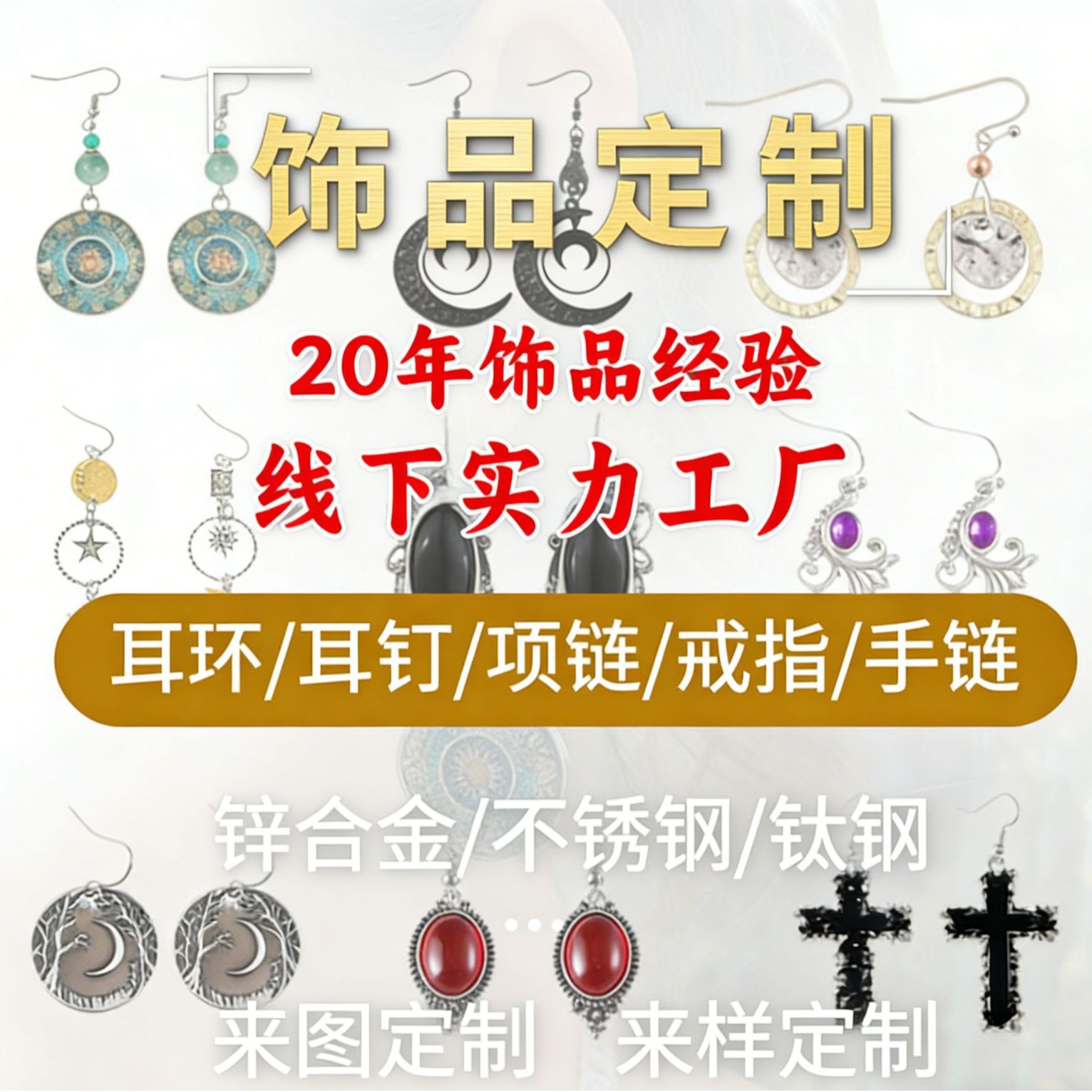 Customized Bracelets, Titanium Steel Necklaces, Rings, Hair Accessories, E-Commerce Samples and Drawings, Custom-Made Stainless Steel Alloy Copper Jewelry