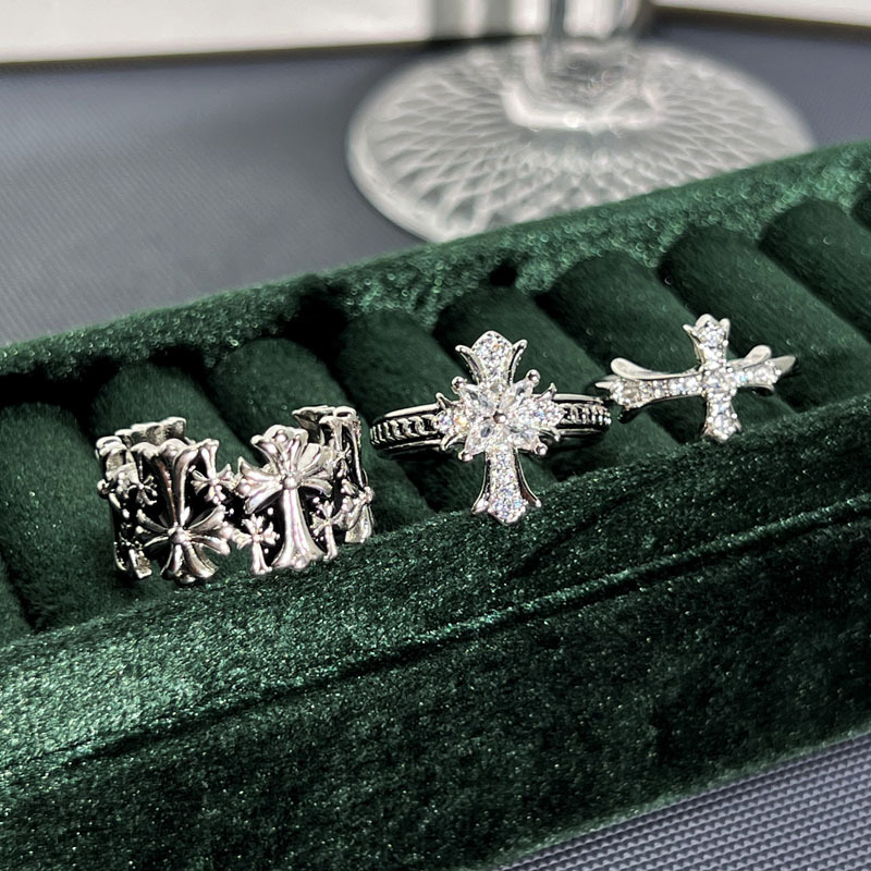 Trendy Cross Fashion Niche Design Personality Open Ring for Women Unisex Style Iris Flower Light Luxury Index Finger Ring