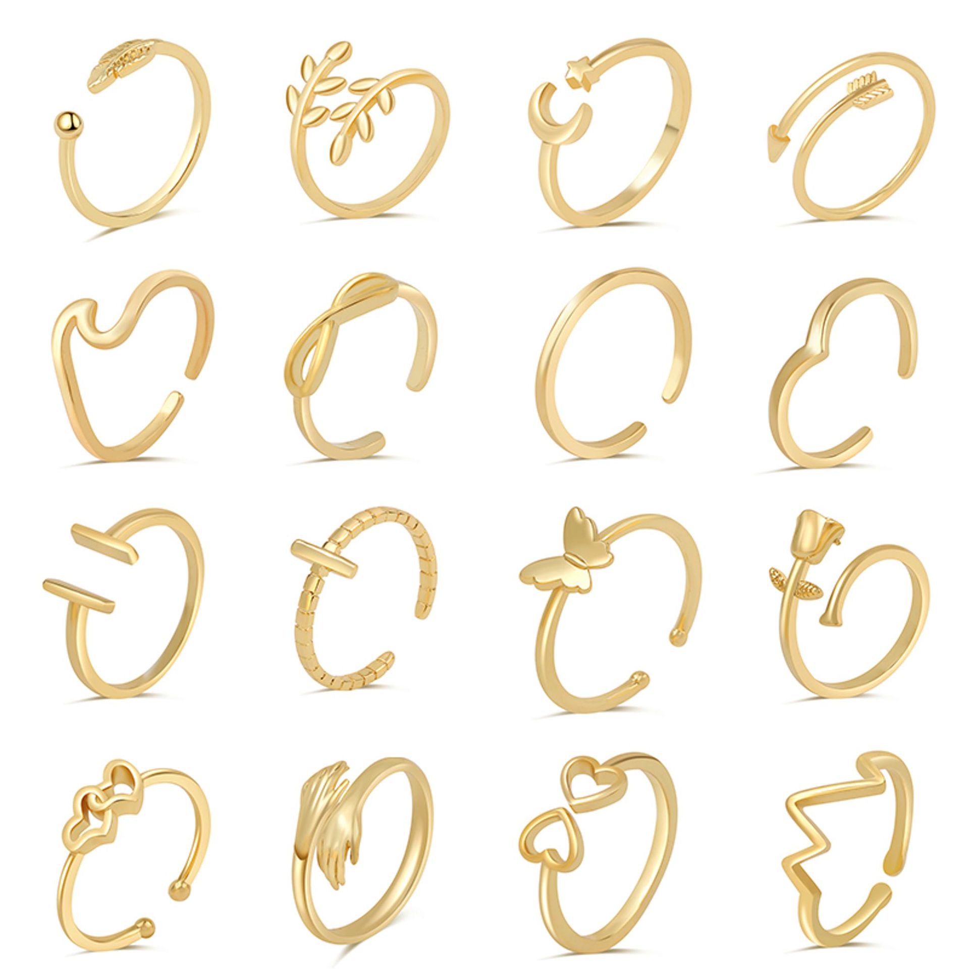 Amazon Europe and America Simple Opening Adjustable Ring 14K18K Electroplated Gold Ring Set Feather